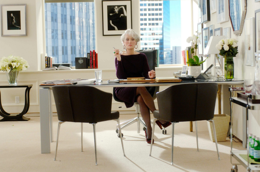 Miranda says these two words a few times throughout the film. She finishes conversations (or should we say one-way interactions?) not with an expression of gratitude but with a dismissal. She releases you to the wolves — each person under her is no more than a marionette that she puppeteers to fulfill her every whim. “That’s all” may only be two words long, but the phrase underscores Miranda’s air of superiority and no-nonsense disposition. “Good luck,”  “See you later,” or “Thank you” are not in her lexicon. Too friendly. Too suggestive of equality. Miranda is not one to eschew indications of corporate hierarchy in favor of friendly bogus.