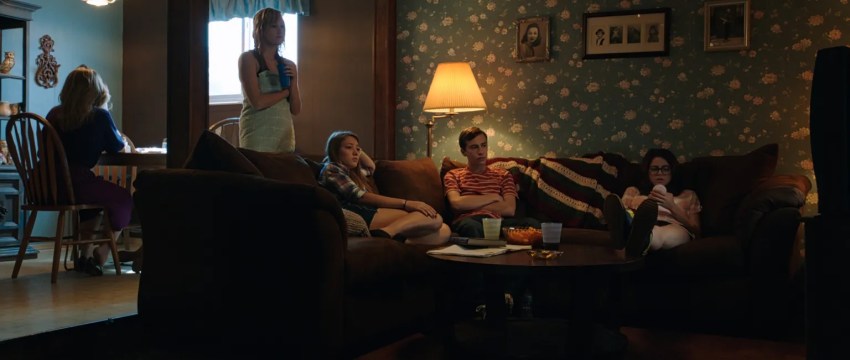 Did you notice that we never see Jay’s mother’s face in full focus? In fact, we barely see it at all, until the end when it’s blurry and not the focal point of the shot. Did you also notice that again, except for the last shot of her in Jay’s bedroom, her mother is always day drinking? Her first appearance in the kitchen, she’s drinking wine in the afternoon. Later, when explaining Jay’s attack to Greg’s mom, she’s seen pouring liquor into her coffee. And did you catch when Greg asks his own mother what’s happening, just after the attack, she says “Those people are such a mess.” Why? They seem normal enough.